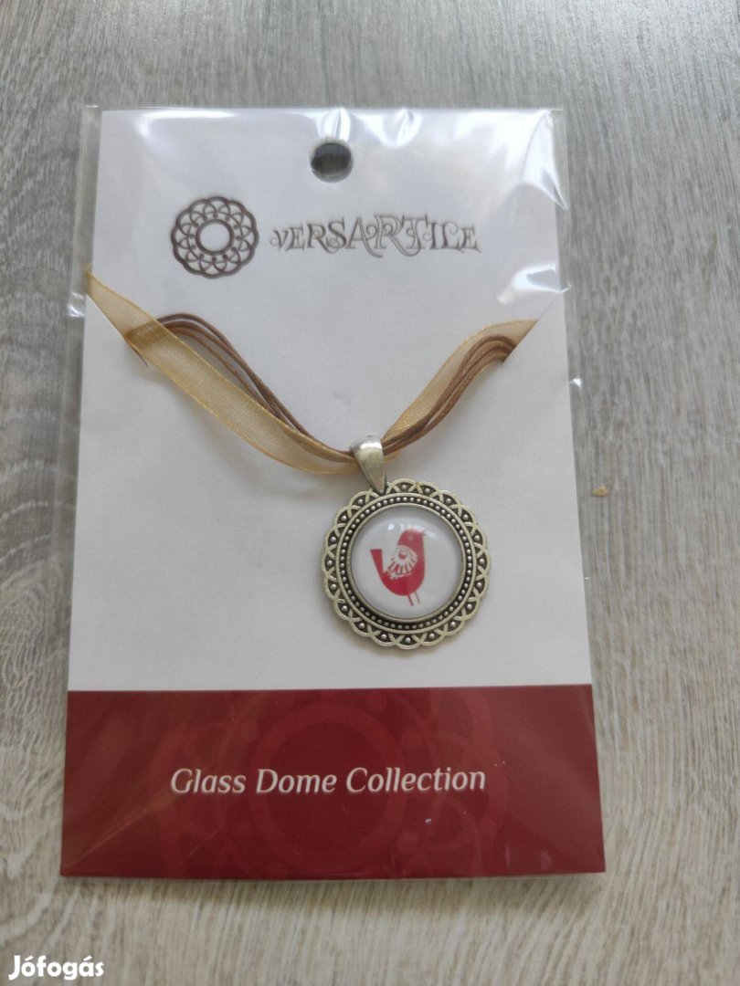 Új, bontatlan állapotú madárkás, népi motívumos üveglencsés nyaklánc