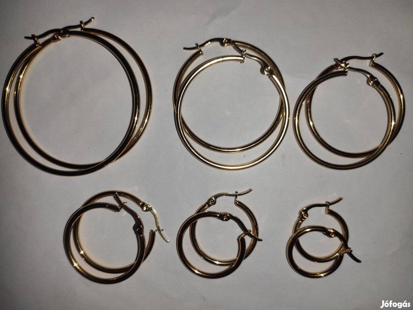 Új acél karika fülbevaló csomag - 6 pár (különböző méret) arany Ajándé