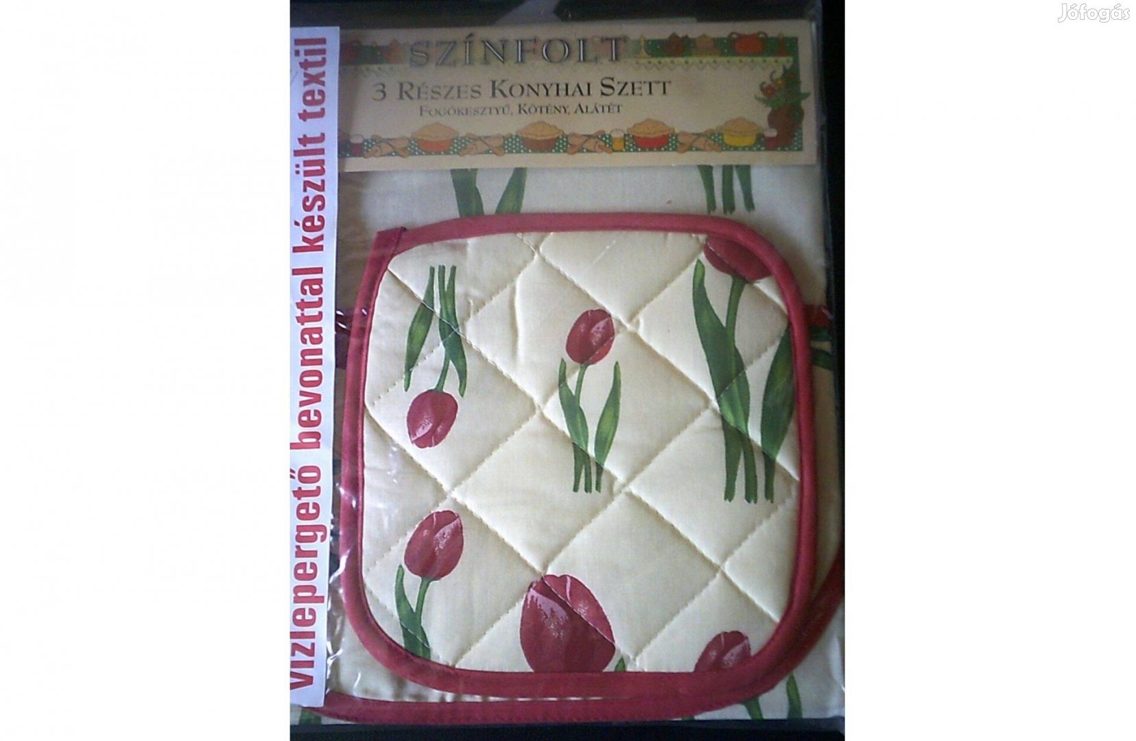 Új bontatlan konyhai kötény kifogóval tulipános mintával