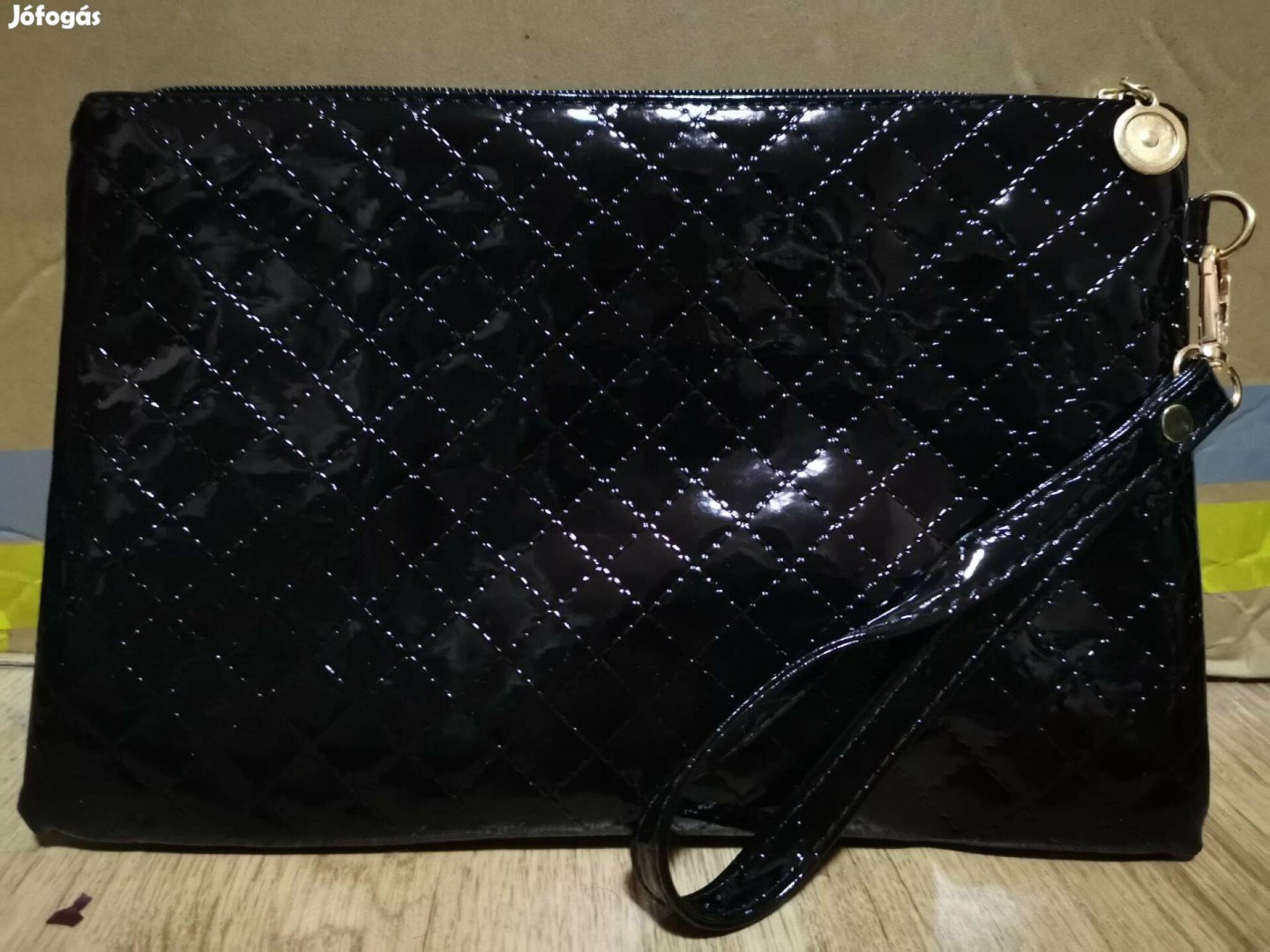 Eladó egy vadonatúj, elegáns, fényes fekete steppelt neszesszer / kézitáska,
