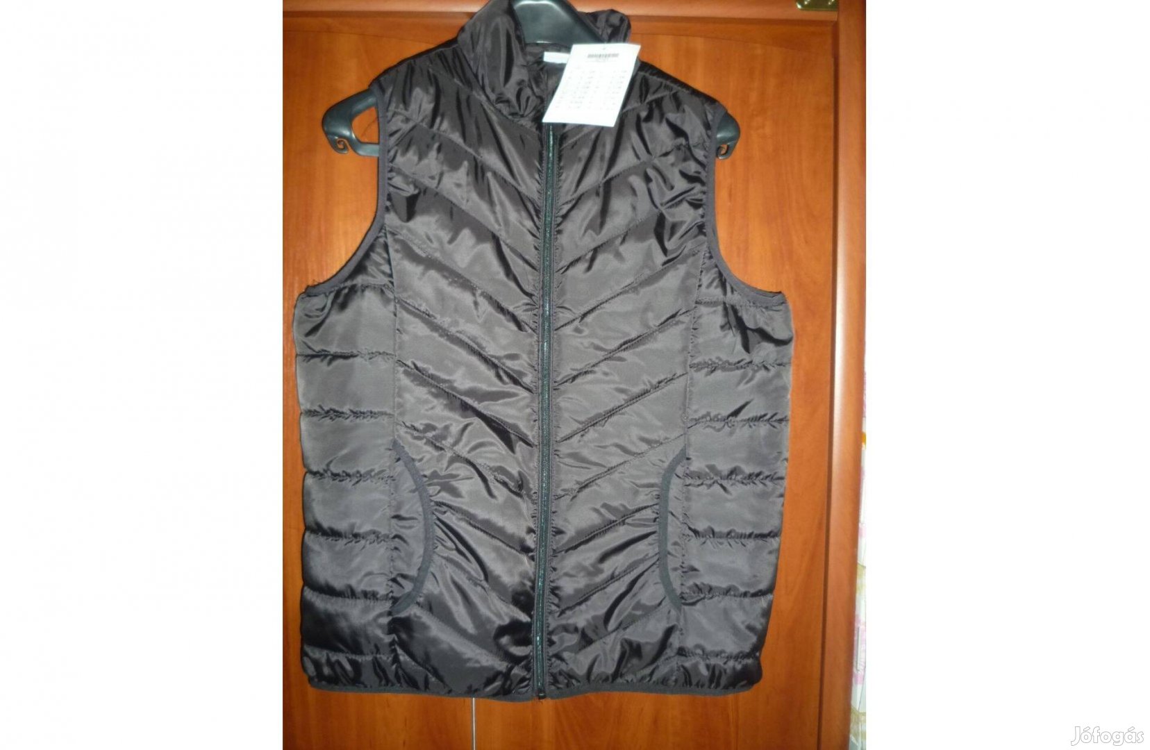 Új fekete színű bélelt cipzáras mellény 42-es méret