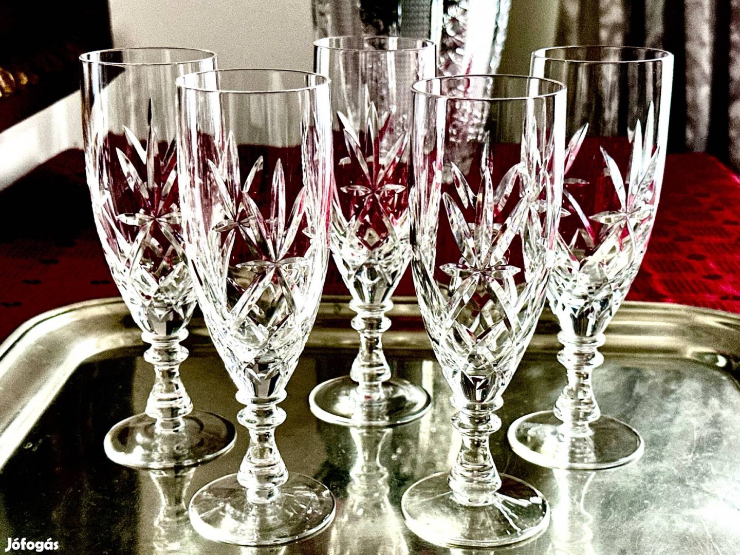 5 darabból álló sosem használt, kristály pezsgős pohárkészlet.
