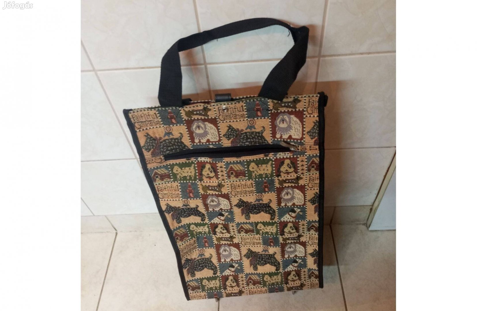 Bevásárló táska textil, kutyás diszitéssel 2 kereke van összecsukható 25x33 cm