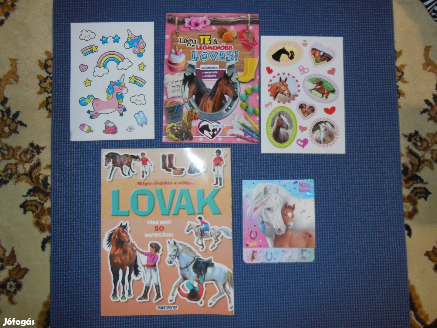 És egy lovas matricás album, ebbe be lettek ragasztva a matricák, de nagyon szép és sok hasznos információt tartalmaznak a kis lovasoknak.