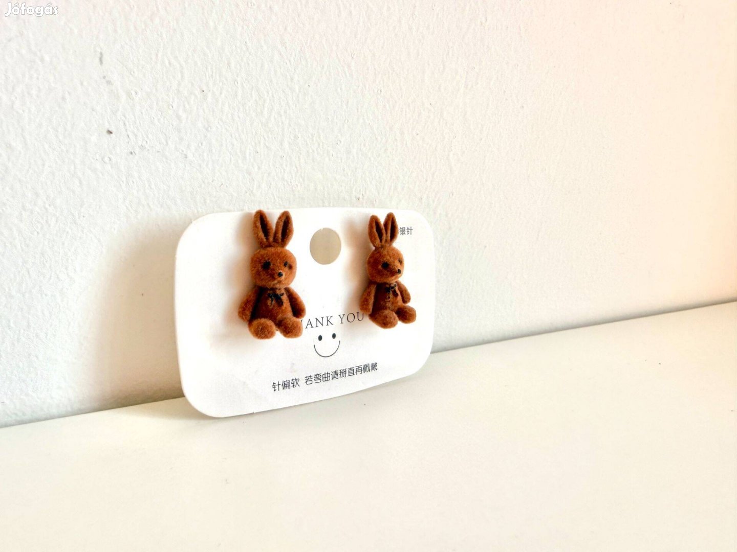 Vadonatúj, hibátlan állapotú, sosem viselt barna, plüss nyuszi alakú dugós fülbevaló.