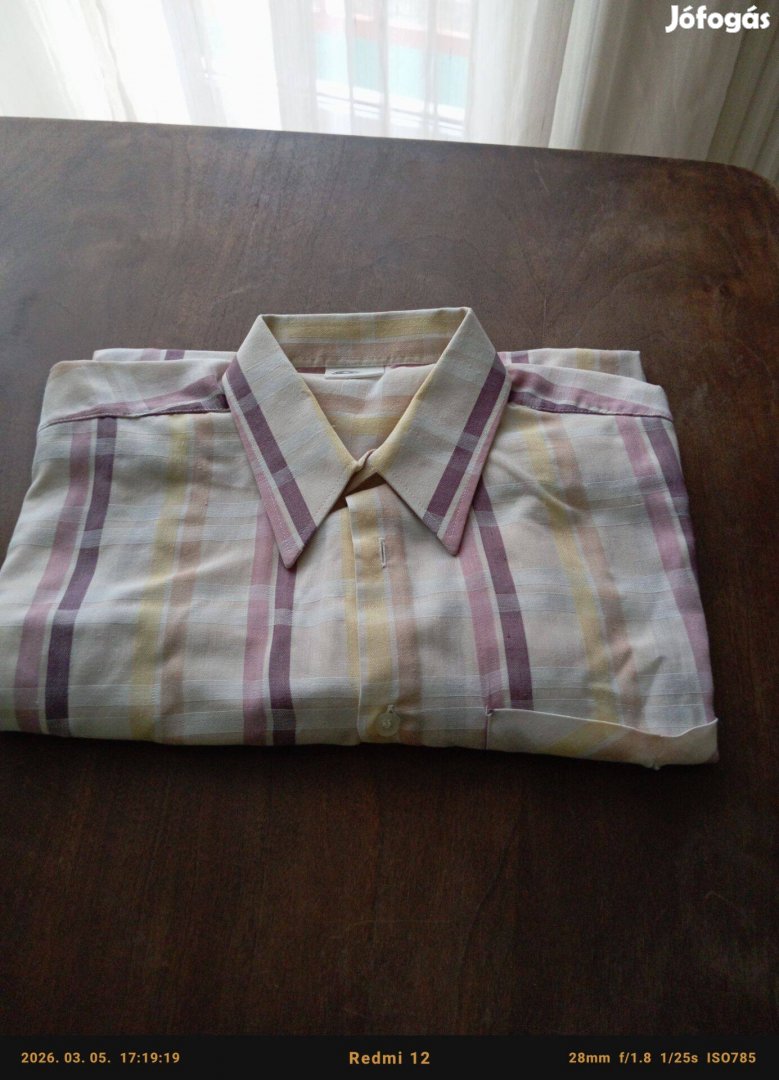 Sárga, lila , fehér csíkos rövid ujjú férfi ing eladó. Átvehető a XVI. kerületben.