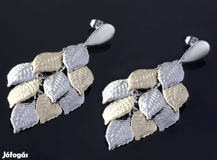 Új rozsdamentes acél fülbevaló - 2 színű levél mintás