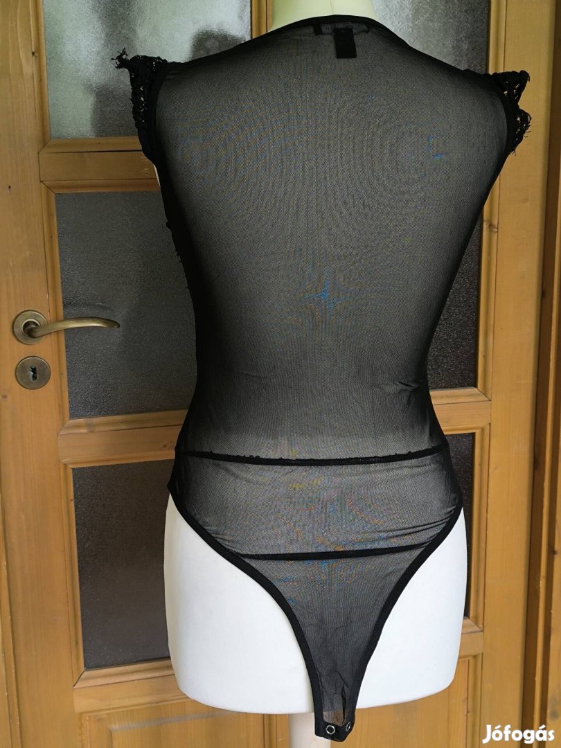 New Look, fekete, nagy részben átlátszó, ujjatlan body, S méret.