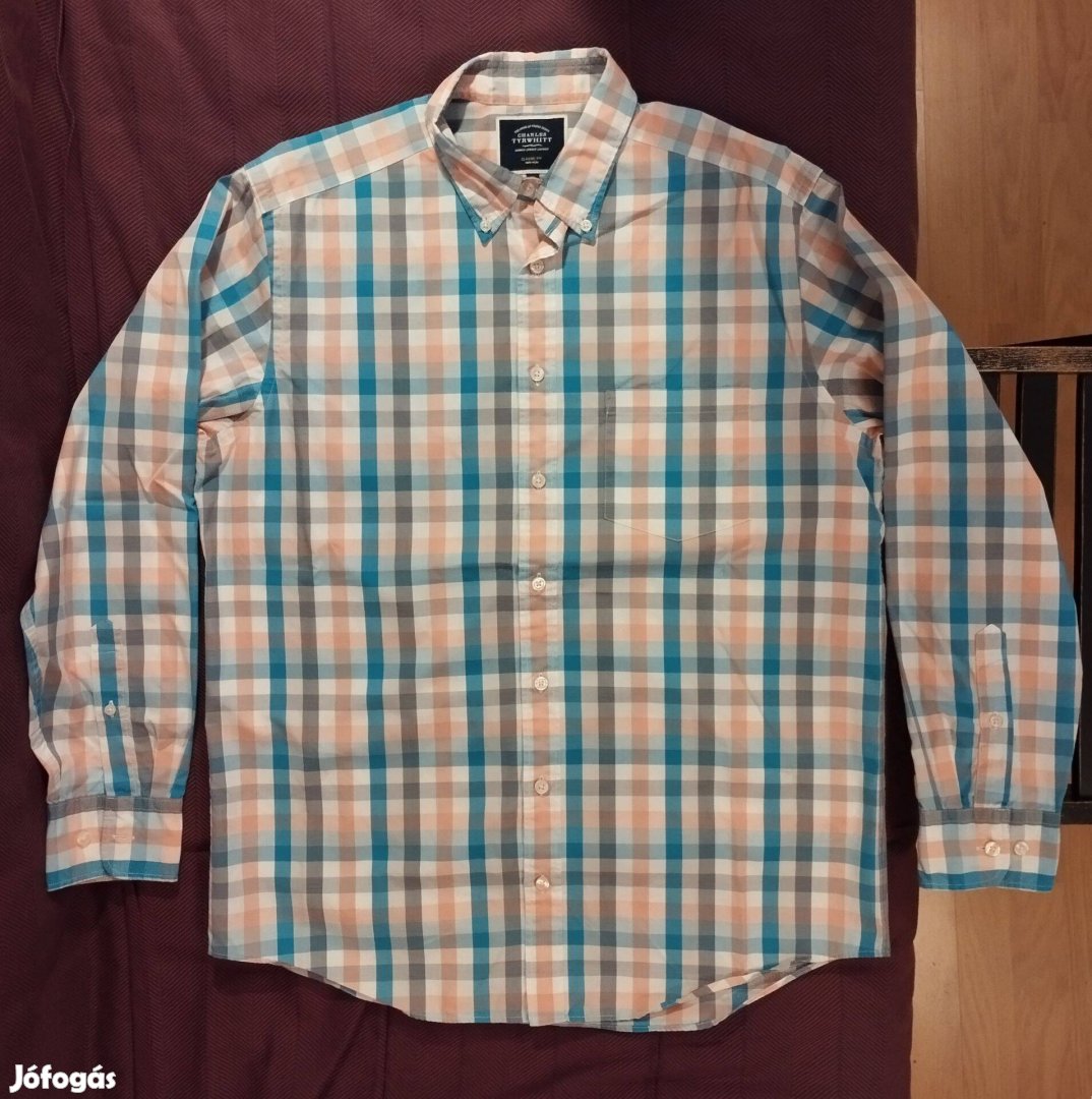 Ez egy Charles Tyrwhitt! "The home of proper shirts." Nagyszerű, kellemes színösszeállítás, nagyszerű, 100% pamut anyag. Egy ingben mi más kell ahhoz, hogy pozitív benyomást keltsen? Mint az új. Classic fit. Vasalást nem igényel (non-iron) Beírt méret M, de valós méretei alapján L-es.