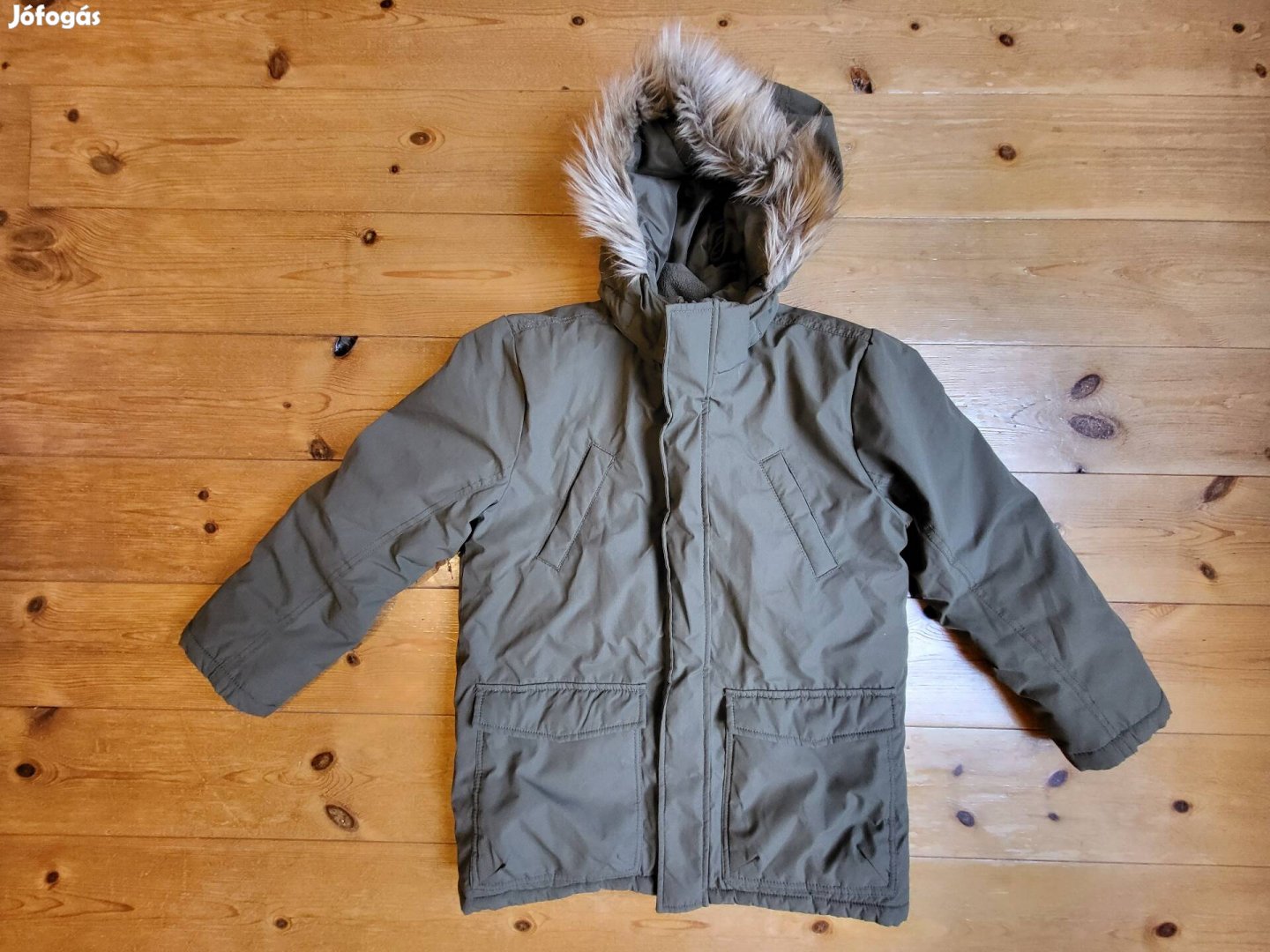 Nagyon szép állapotú meleg téli kabát. Kapucnija levehető.