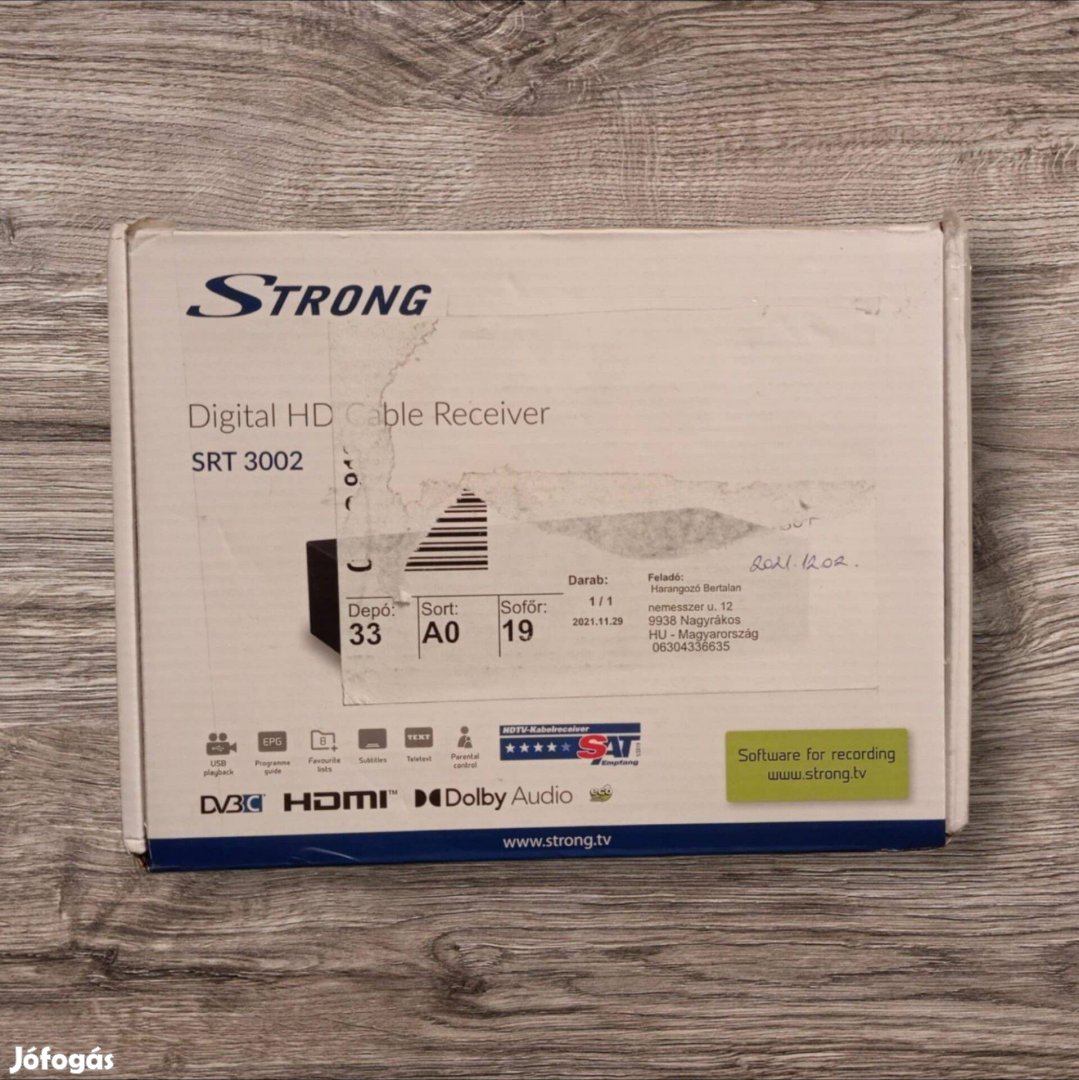 Újszerű Strong SRT 3002 digitális kábel tv beltéri egység (Dvbc)