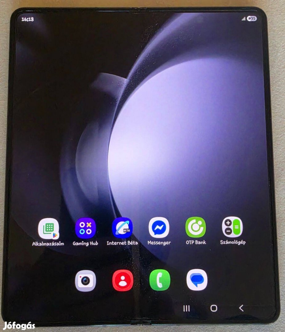 A képeken látható, újszerű állapotú telefon, dobozával, tartozékával, a szintén képen látható övre rakható tokkal és plusz védőfóliával (a fólia dobozán lévő "Flip5" ellenére az "Fold5" akar lenni). A telefon kezdetektől fogva az említett és képen lévő tokban volt, fóliás kijelzővel, a kameralencséken szintén a képen is rajta lévő védőgyűrűk voltak. A zsanérok hibátlanok, a Samsungtól 2,5 éve történt vásárlása óta kb. 10x volt szétnyitva, abból 5x a "de jó, muti már milyen szétnyitva!" kérés miatt. Előbbiből fakadóan kihasználatlanság miatt válok meg tőle.