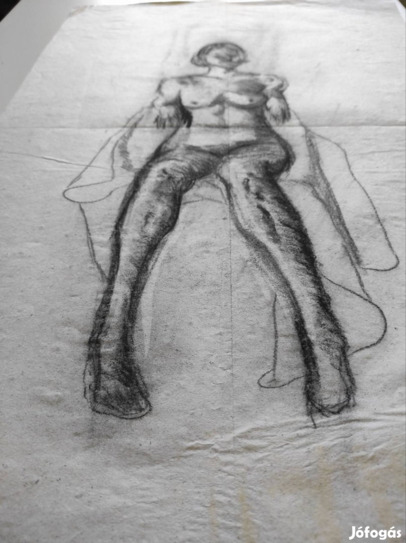 Kb. A4-es méretű (kicsit nagyobb..) papírra készült akt, szénrajz.