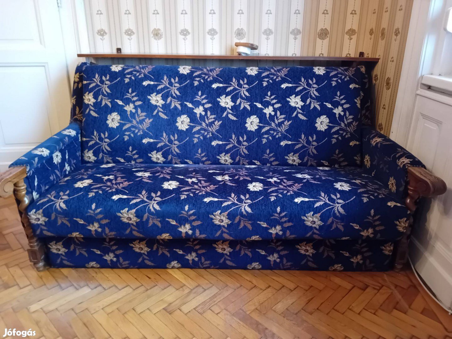 Eladó a képeken látható ággyá alakítható (180x110) kanapé, 2 db fotel és 2 db puff.