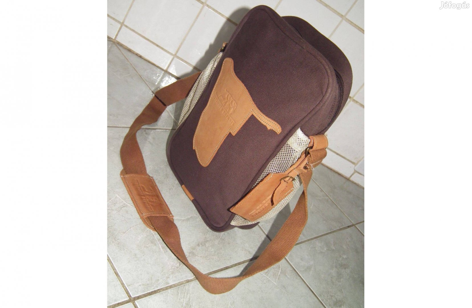 Újszerű Ultimate Safaris férfi válltáska táska, kb. 35 x 22 x 8 cm., vállpánt max 110 cm., oldal 2 hálós zseb, belül 1 rekesz kívül 1 cipzáras zseb.