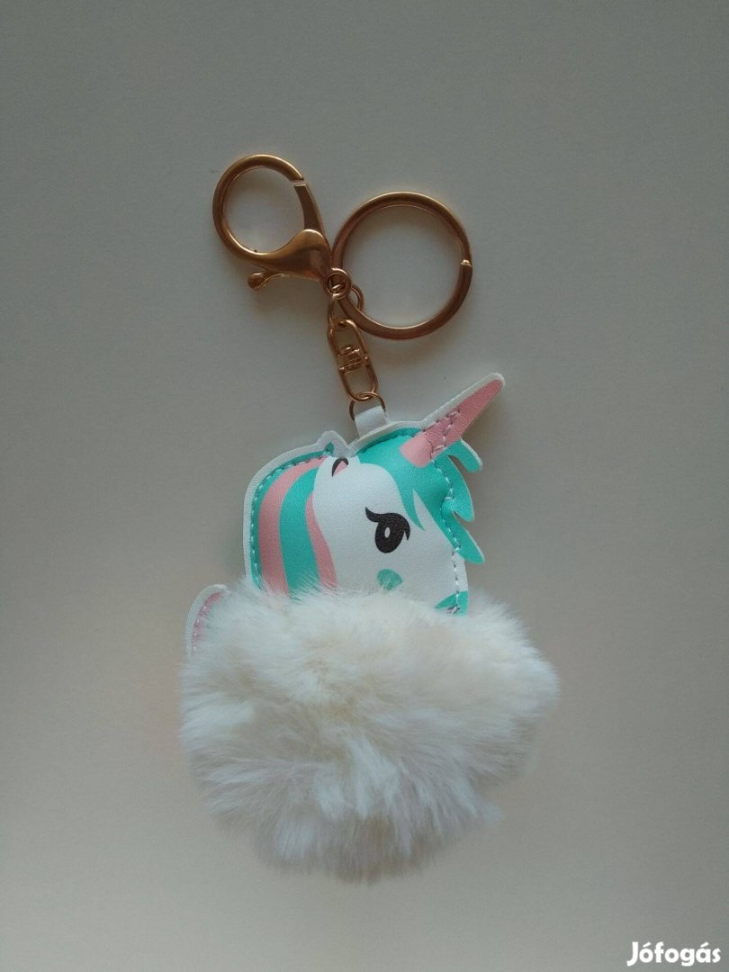 Unikornis kulcstartó fehér rózsaszín világoskék plüss pamacs új
