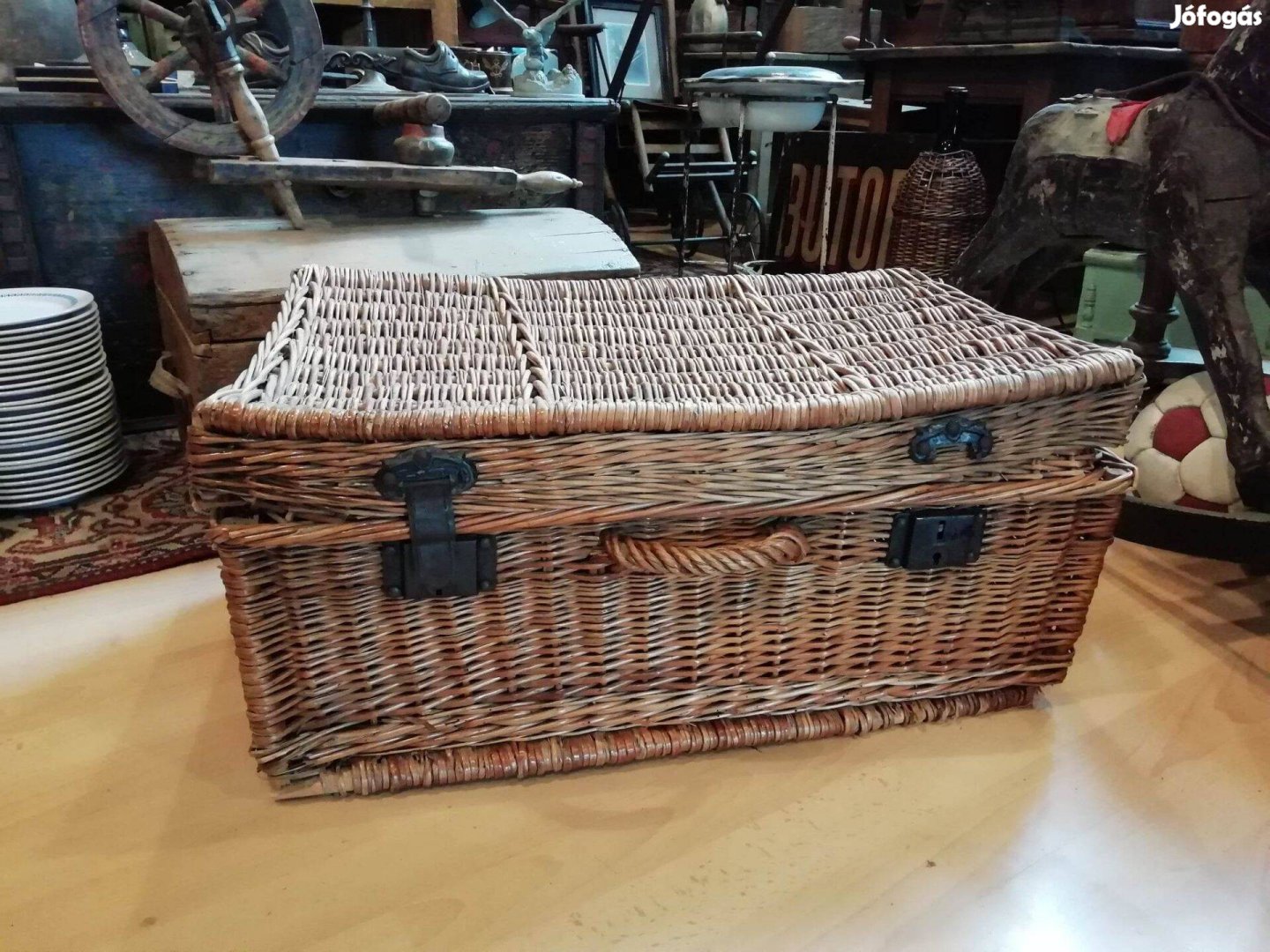 Eladó ez a 20. század első feléből származó fűz vessző bőrönd. Szegényebb emberek kofferja volt, zárak is eredetiek, sajnos az egyik hiányos. Szép viszonylag ép dekorációs darab, mely tisztított és kezelt felületű. Ára: 24.990.- helyett- 19.990.- Méretek a fotókon!