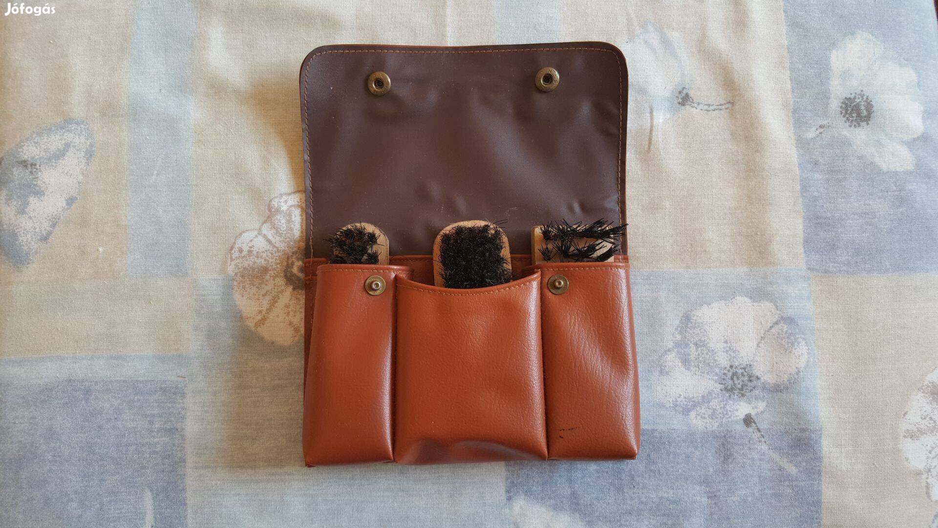 Utazós cipőtisztító készlet táskájában
