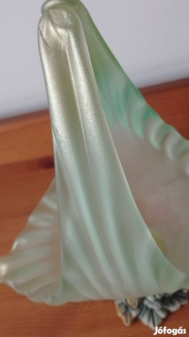 Különleges üveg gyümölcsös tál,alul kerámia díszítéssel.Magassága kb.30 cm.