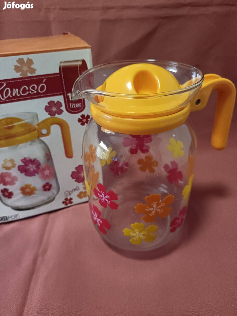 Üveg narancssárga mintás kancsó kiöntő tároló eladó Új !