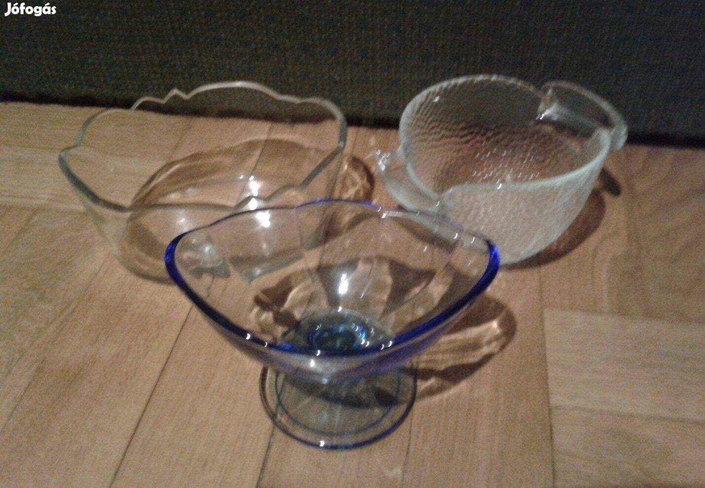 Eladó a képen látható 3 darab hibátlan üvegtálka, üvegkehely, kínáló tál.