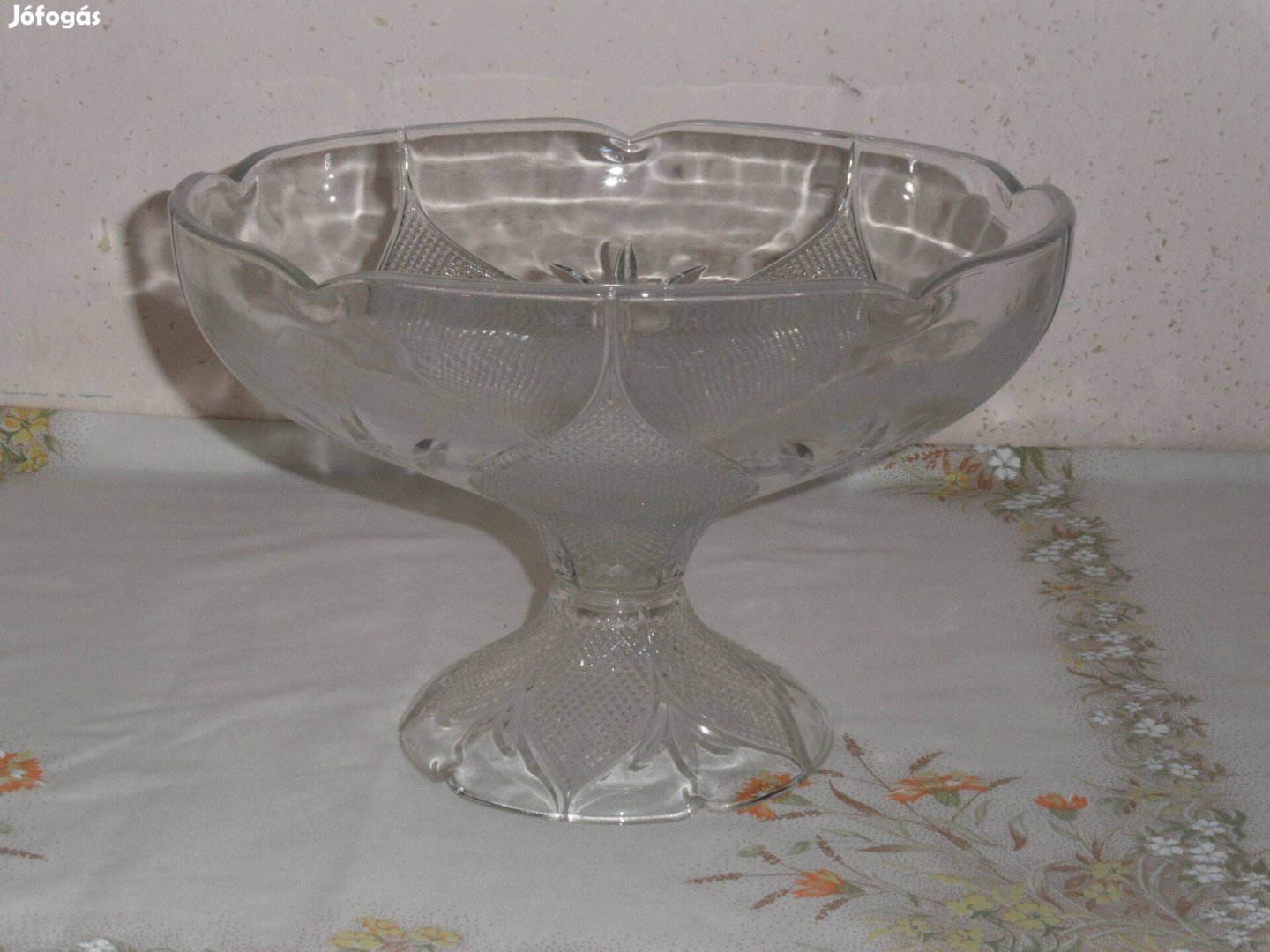 Üveg talpas tál, kínáló, gyümölcsöstál