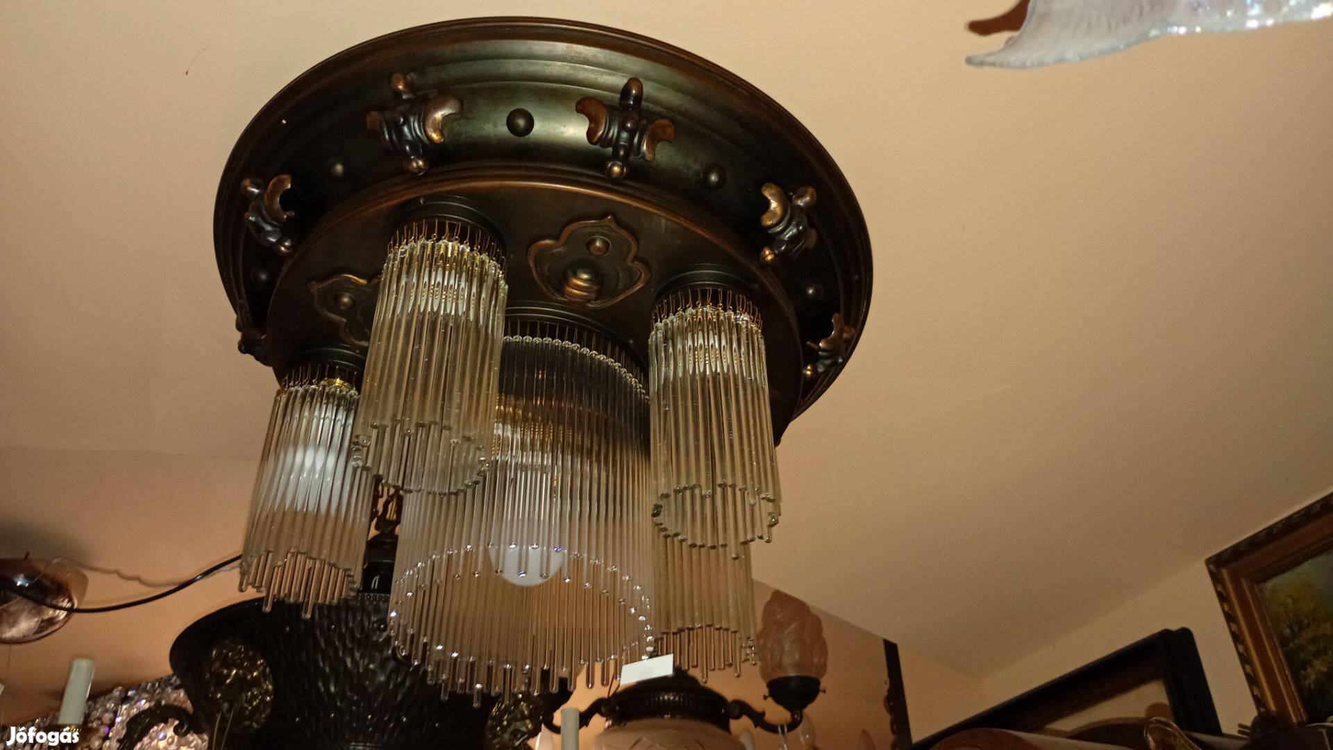 Üvegpálcás mennyezeti bronz csillár felújítva szép állapotban!