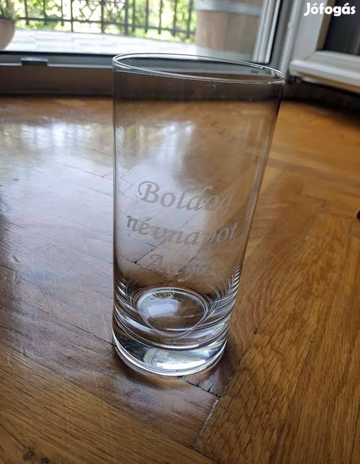 Üvegpohár - "Boldog névnapot Anya" gravírozással