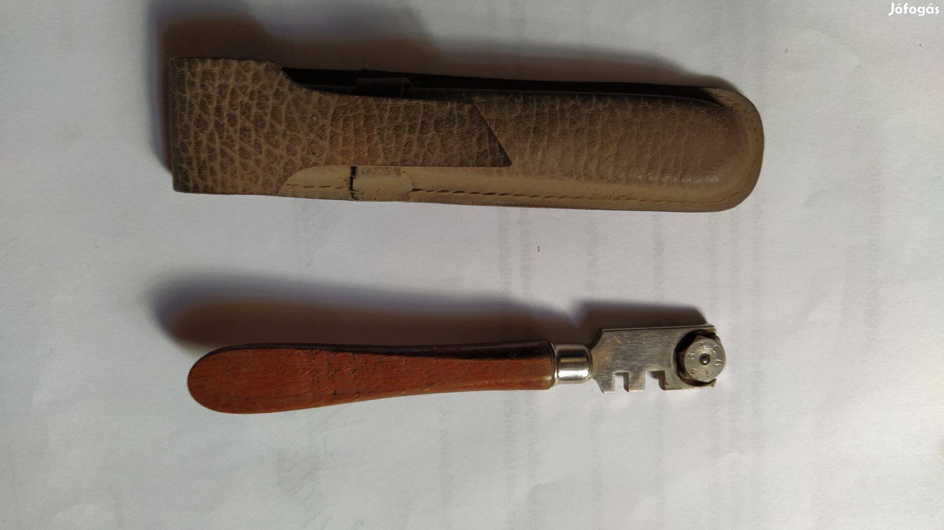Üvegvágó bőrtokban, NSZK gyártmány.