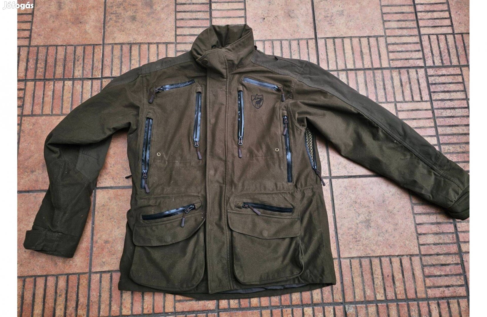 Eladó egy profi végig cipzáros és tépőzáras, állítható ujjvégű és derekú ,hónalj szellőzős ,hátul is zsebes vadász kabát