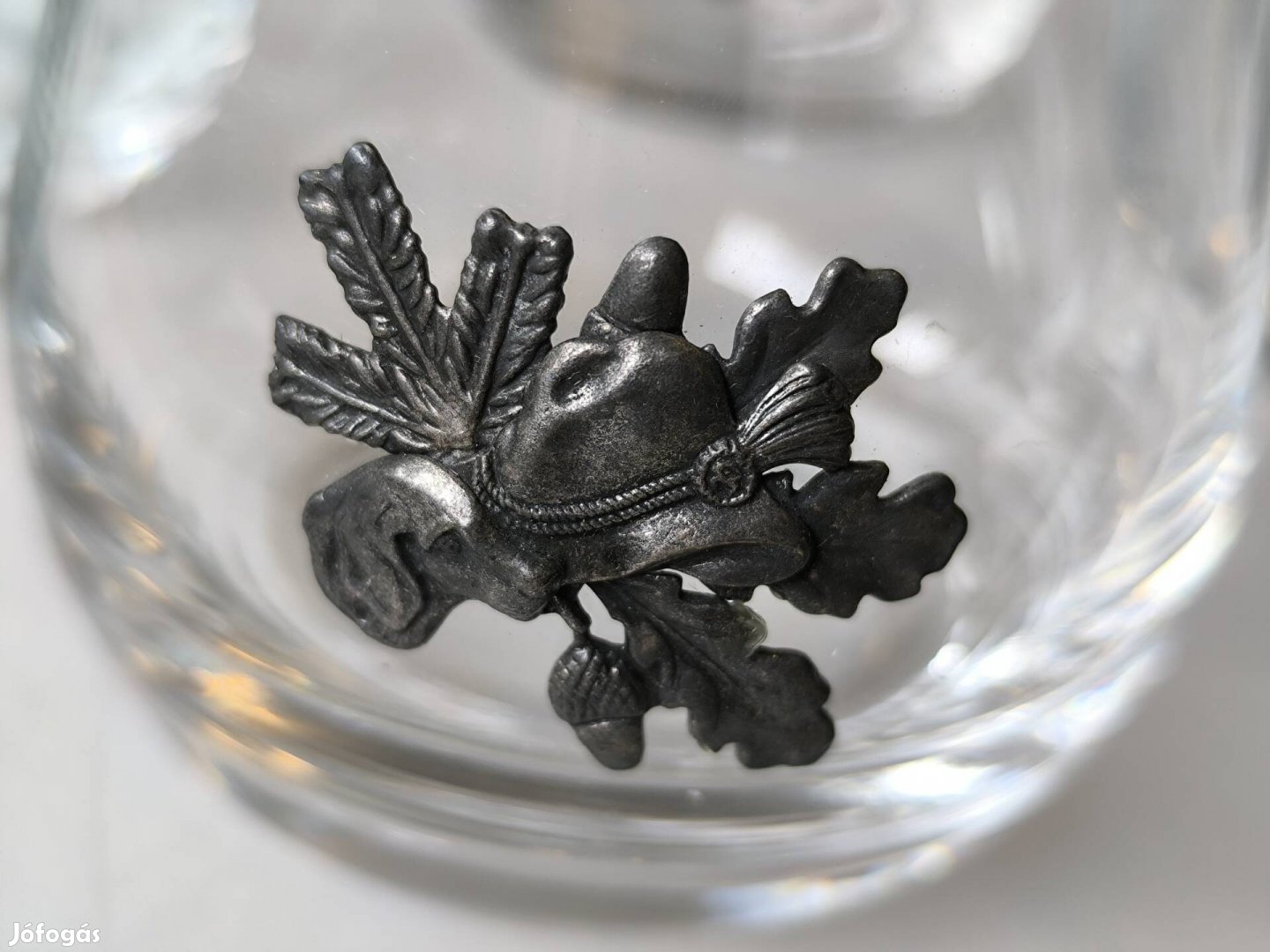 Vadászat témában, igényes, ólom figurákkal díszített, 5 db-os konyakos pohár készlet.