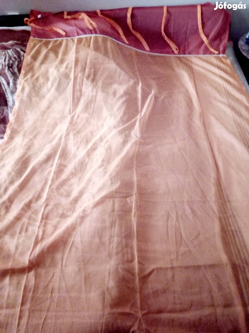 Eladó, 4 db vadonatúj, egyforma, narancsos-bordó színű, sötétítő vagy árnyékoló függöny. A függönyök teteje , 7 db selyem zsinórral van ellátva, rögzítés céljából.