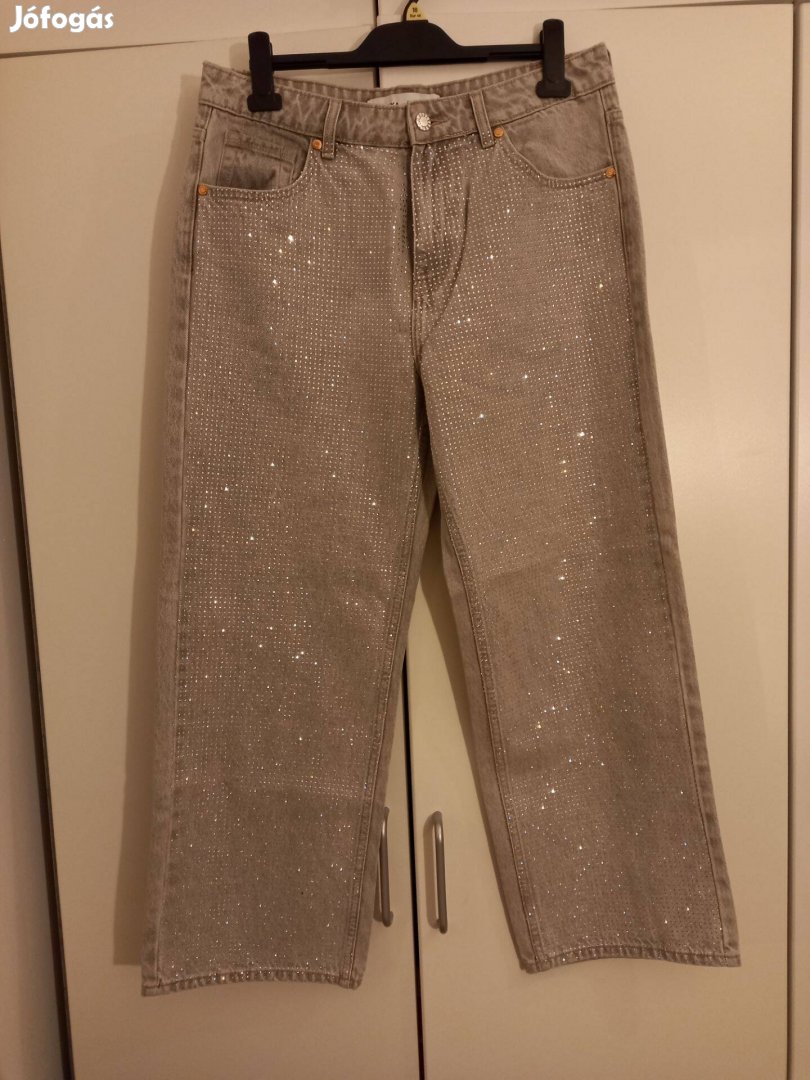 Világosszürke, strasszköves, vadonatúj farmer. Nem sztreccs anyagú.