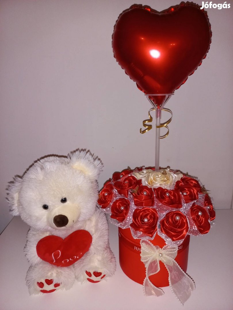 Kézzel készített örökrózsa box+mackó. Személyesen a 18. kerületben átvehető előre egyeztetés után a hét bármely napján.