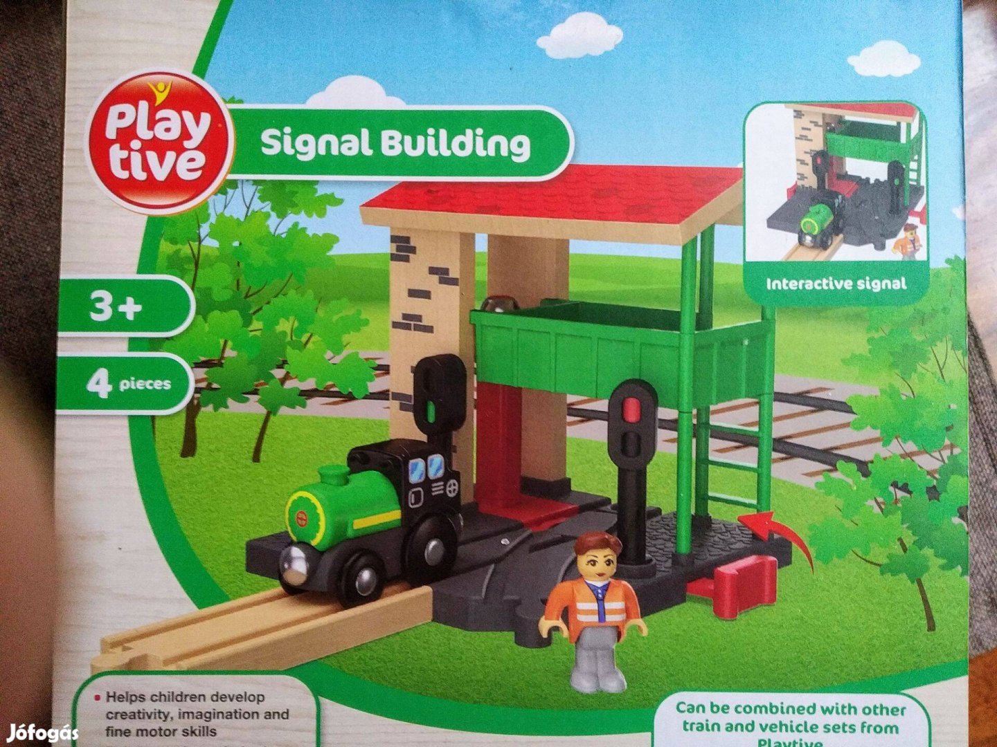 Vasútállomás-bakterház-váltó és szemafor Favonat Mozdonnyal Lámpákkal