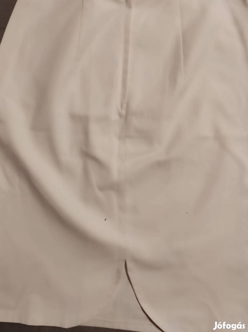 Térd alá érő fehér vászon szoknya, hátul sliccelt, cipzáras, gombos, 38-as méret