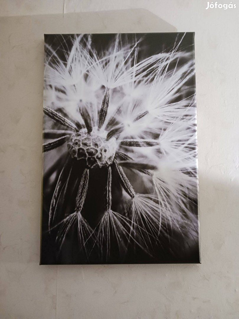 Fakeretre feszített pitypangos vászonkép 60 × 40 cm, fekete - fehér színben eladó.