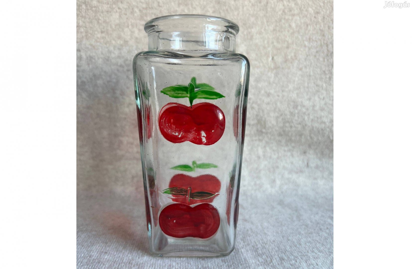Kiváló állapotban lévő formatervezett, újszerű üveg virágváza eladó. Kiválóan alkalmas dekorációs célokra, akár aqua gyöngynek is. Váza, üvegváza, virágváza, dekoráció. Festett alma mintával díszítve. Dobozban tárolva.