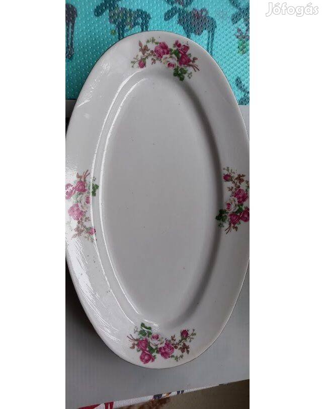 Különböző méretű porcelán lapos és mélytányérok, és egy tálaló eladó.