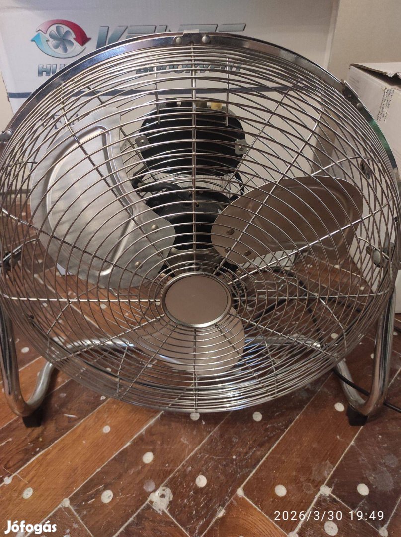 Eladó egy brutálisan erős padlóventilátor, ami még a legnagyobb hőségben is megmozgatja a levegőt. Nem egy sima műanyag darab: masszív fém lapátok és stabil talp jellemzi. Ideális nappaliba, edzőterembe vagy akár műhelybe is. Több fokozatban állítható, de már az egyes fokozaton is komoly szelet csinál!