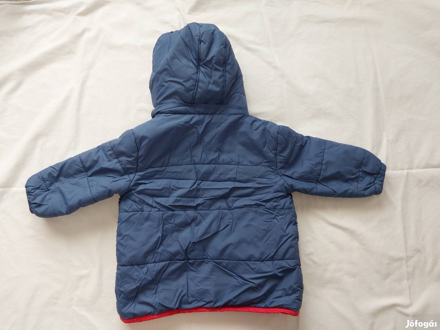 Közepesen vastag, bélelt télikabát "Verdák" mintával. Beleírt méret: 23 hónap. Kb. 86-92-es méretnek felel meg. Kapucnija lecipzározható.