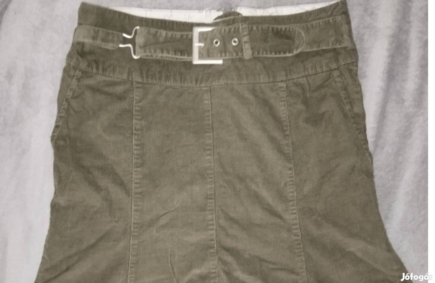 Eladó a képen látható sötétzöld, kord, 40-es méretű szoknya. Jó állapotú, hibátlan, bár lehet, ezt a kép nem adja vissza. Kb.térdig/kicsivel térd alatt ér.