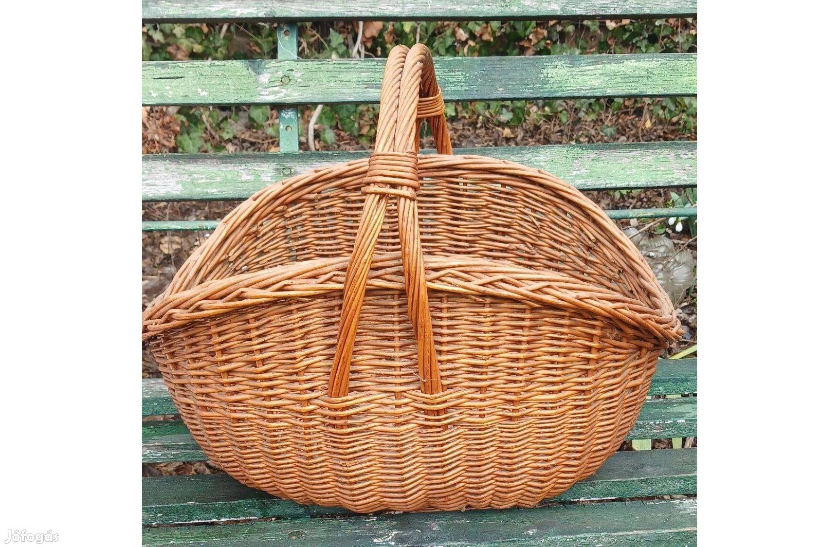 Vessző kosár, kis tisztogatás előtt, de így is szép, masszív. Kb 42 hosszu.