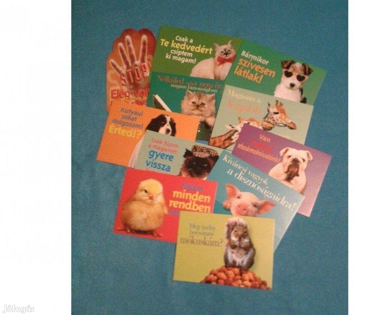 Eladó a képen látható többféle vicces írható képeslap. Ára: 200 Ft/db.