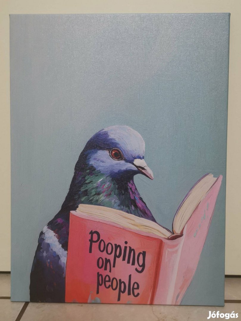 Feszített vászonra nyomtatott humoros dekoráció, amelyen egy könyvet olvasó galamb látható. Igazi beszélgetésindító darab, otthonra, irodába vagy ajándéknak is szuper választás!