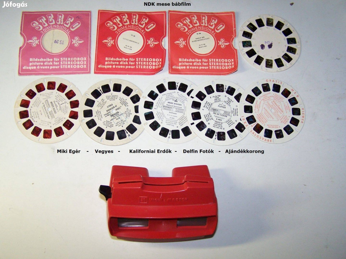 Eladó a fotókon látható, igen megkímélt állapotú View Master 3D Made In Belgium térhatású nézőke a képeken fellelhető korongokkal egyben, a hirdetésben jelzett összegért budapesti személyes átvétellel vagy postázás előre utalás után. Adott esetben csak a korongok külön is megvásárolhatók, de csak egyben, 1500 Ft / db áron.