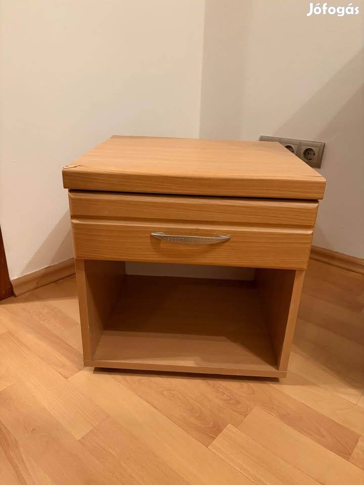 Használt, de jó állapotú , világosbarna éjjeliszekrény. Egy pici hibája van, ami látszódik a képen is.