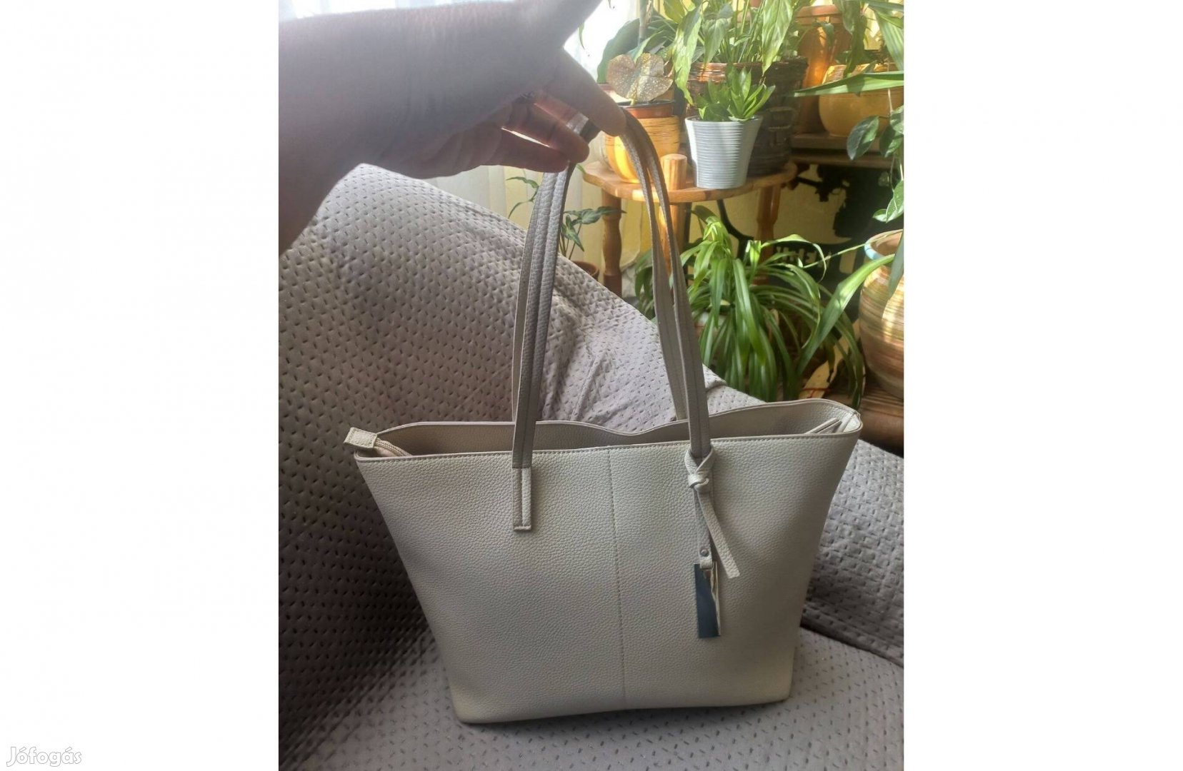 Újszerű, pár alkalommal használt , világosbézs színű, bélelt, minőségi válltáska, nagy belső térrel, 2 nagy belső zsebbel, kevesebb, mint fél áron, mérete kiterítve kb. 45 X 30 cm.