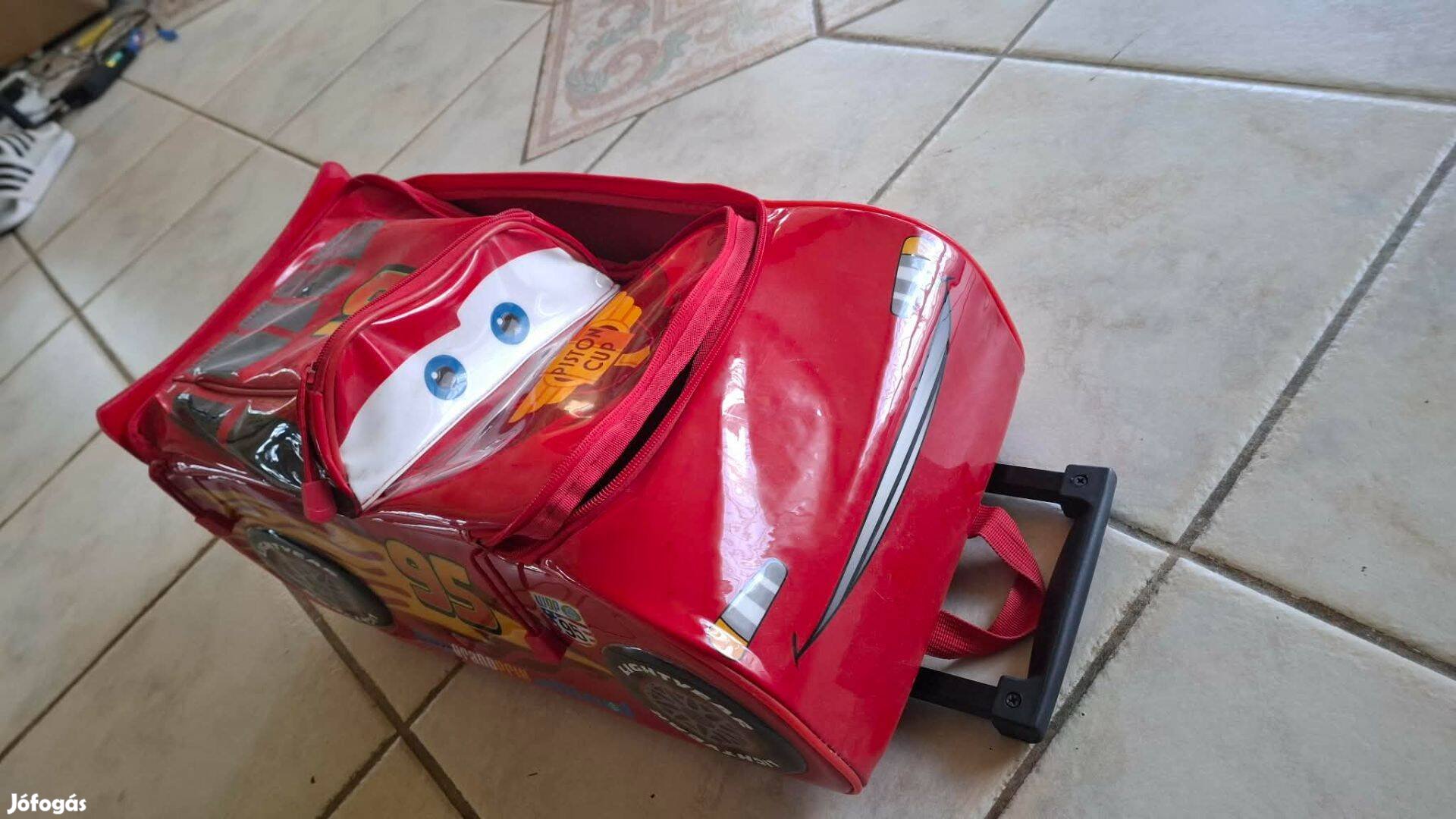 Eladó a képeken látható Verdás Villám Mcqueen bőrönd.Gurulós,nem koszos,nem szakadt.
