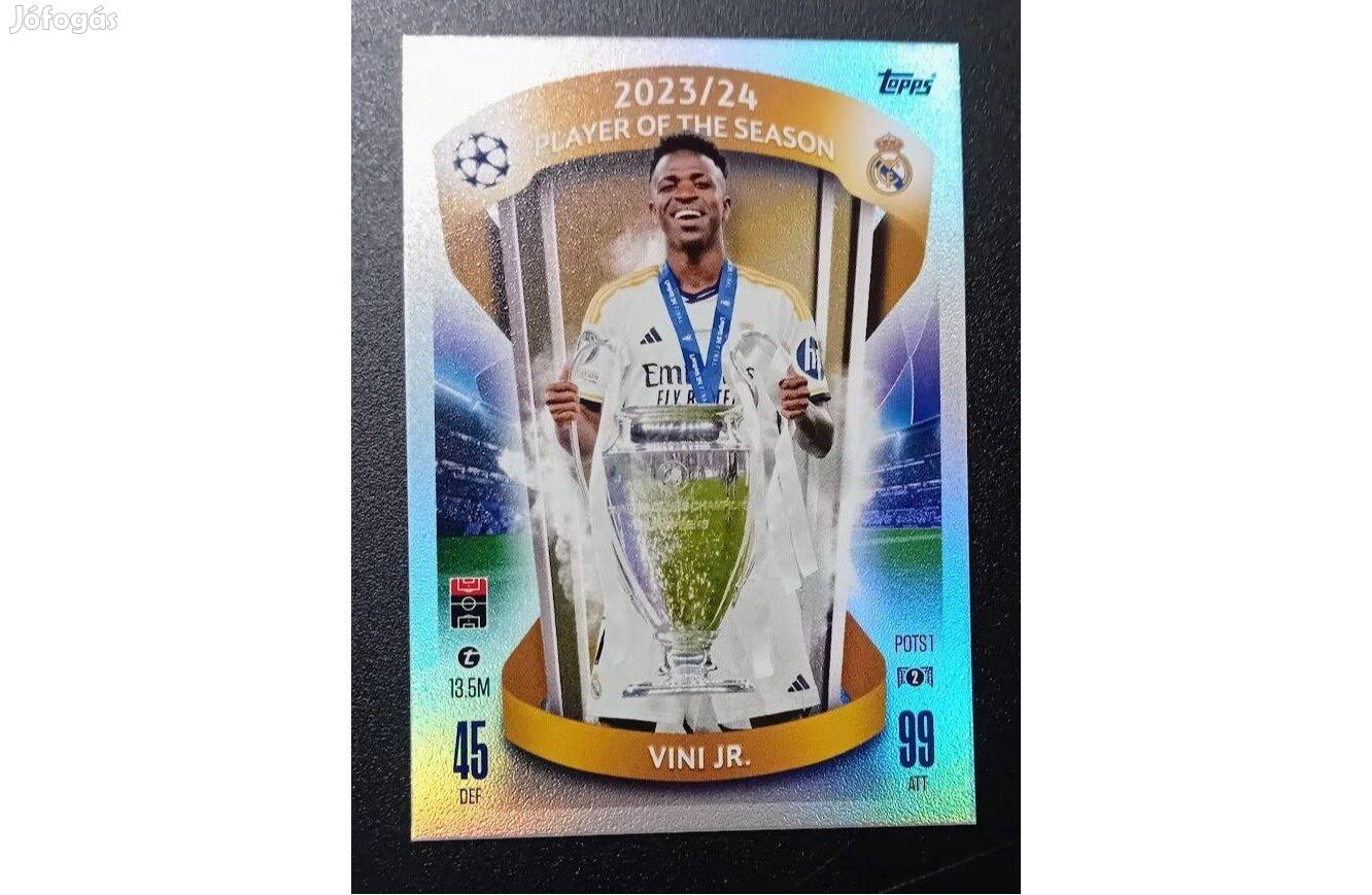 Eladó egy darab Vinícius Jr. (Real Madrid) Player of the Season focis kártya a Topps UEFA Champions League & Europa League 2024-2024. Match Attax sorozatból. Kód: POTS1